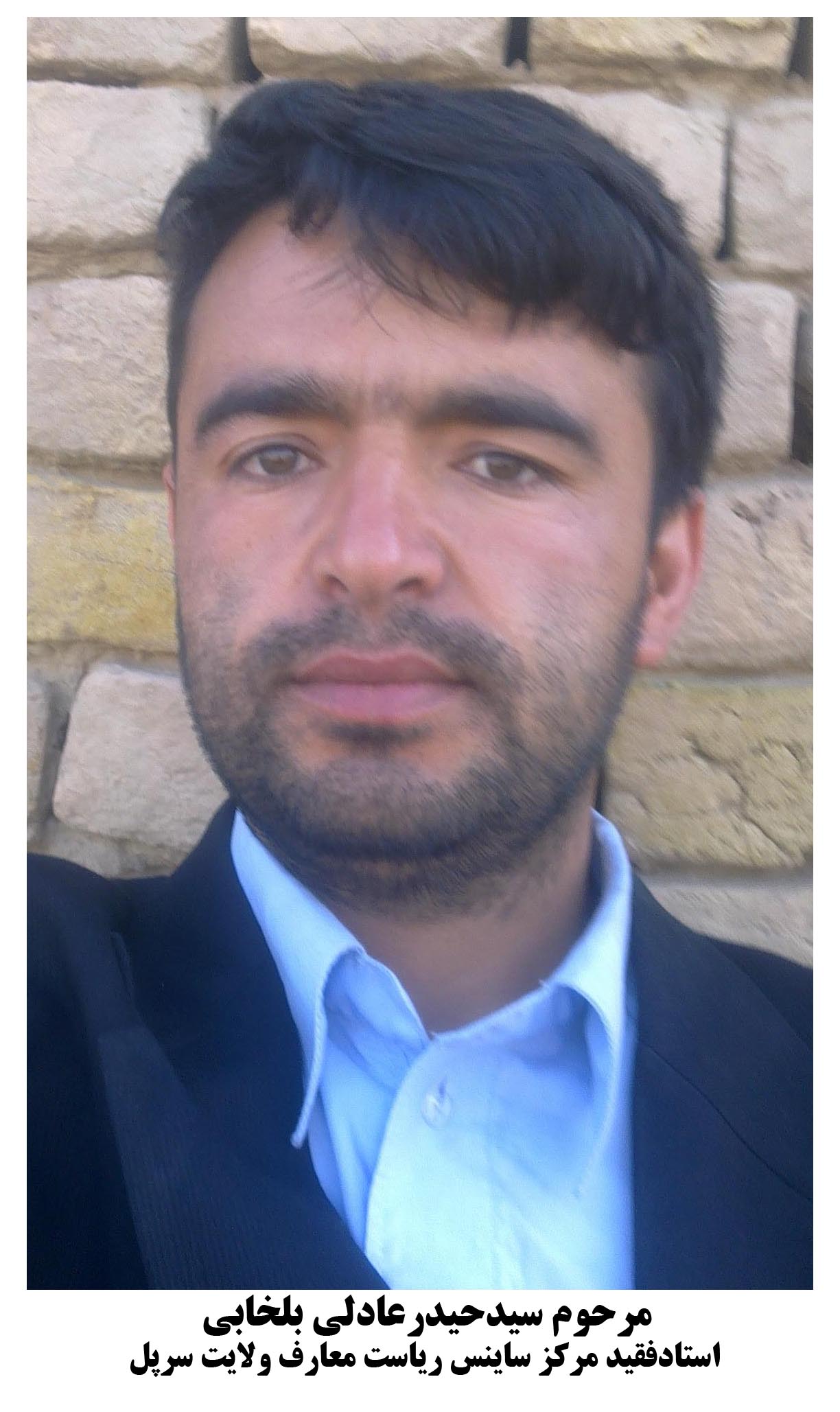 سید حیدر عادلی یکی از اعضای نظارت معارف ولایت سر پل در اثر یک حادثه ترافیکی در شهر سرپل در گذشت و اصحاب معارف بلخاب و ولایت سرپل را داغدار کرد